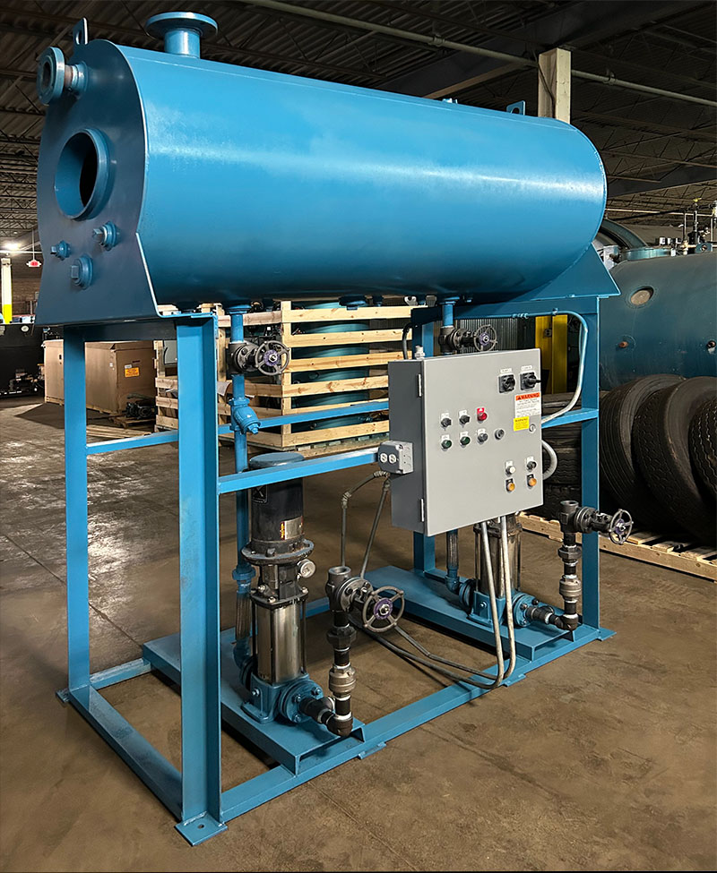 Inventory Atlantic Feedwater –300 gal. Feedwater Tank Atlantic Feedwater 300 gal feedwater tank.pdf FEEDWATER TANK Manufacturer: Atlantic FeedwaterModel: 300FSYear: RefurbishedType: Feedwater TankCapacity: 300Gal. CONNECTIONS Make UpInlet: 3/4“High Pressure: 1 – 1/2“Vent: 4″High Pressure Return: 1 – 1/2″ ELECTRICAL 460V/3PH/60HZ DIMENSIONS L x W x H: 79” x 60“x 43“
